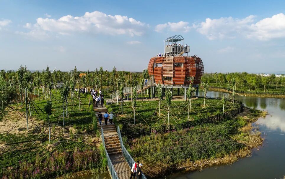 在复垦区的生物多样性主题公园,以湖水水系为主线脉络、当地生态系统为设计基础,设置了准能生态文化成果展示区、湿地水系生态涵养区、黄土高原地貌展示区、智慧低碳示范展示区等区域。园内引进了鸵鸟、孔雀、石鸡等小动物,其良好的生态环境还吸引了猞猁、鹰、狐狸、獾子、松鼠、赤麻鸭等多种野生动物“入驻”,形成了一个小型的生态系统。这些生物的生命故事通过视觉、听觉、嗅觉、触觉等多种形式展现在大众眼前,激发了人们探寻生物物种多样性的兴趣,也成为一个生动的生态实践课堂,让更多的人了解和认识到生物多样性的重要性,让保护生物多样性的观念深入人心,激发公众参与生态保护的热情。